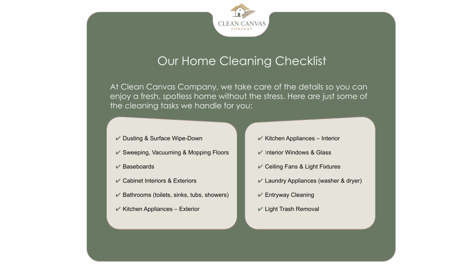 Whether you are handing over the keys to a landlord or moving into your dream home, The Clean Canvas Company ensures every surface is spotless. We specialize in deep-cleaning vacant properties, making homes "photo-ready" for sellers and "move-in fresh" for new owners.
